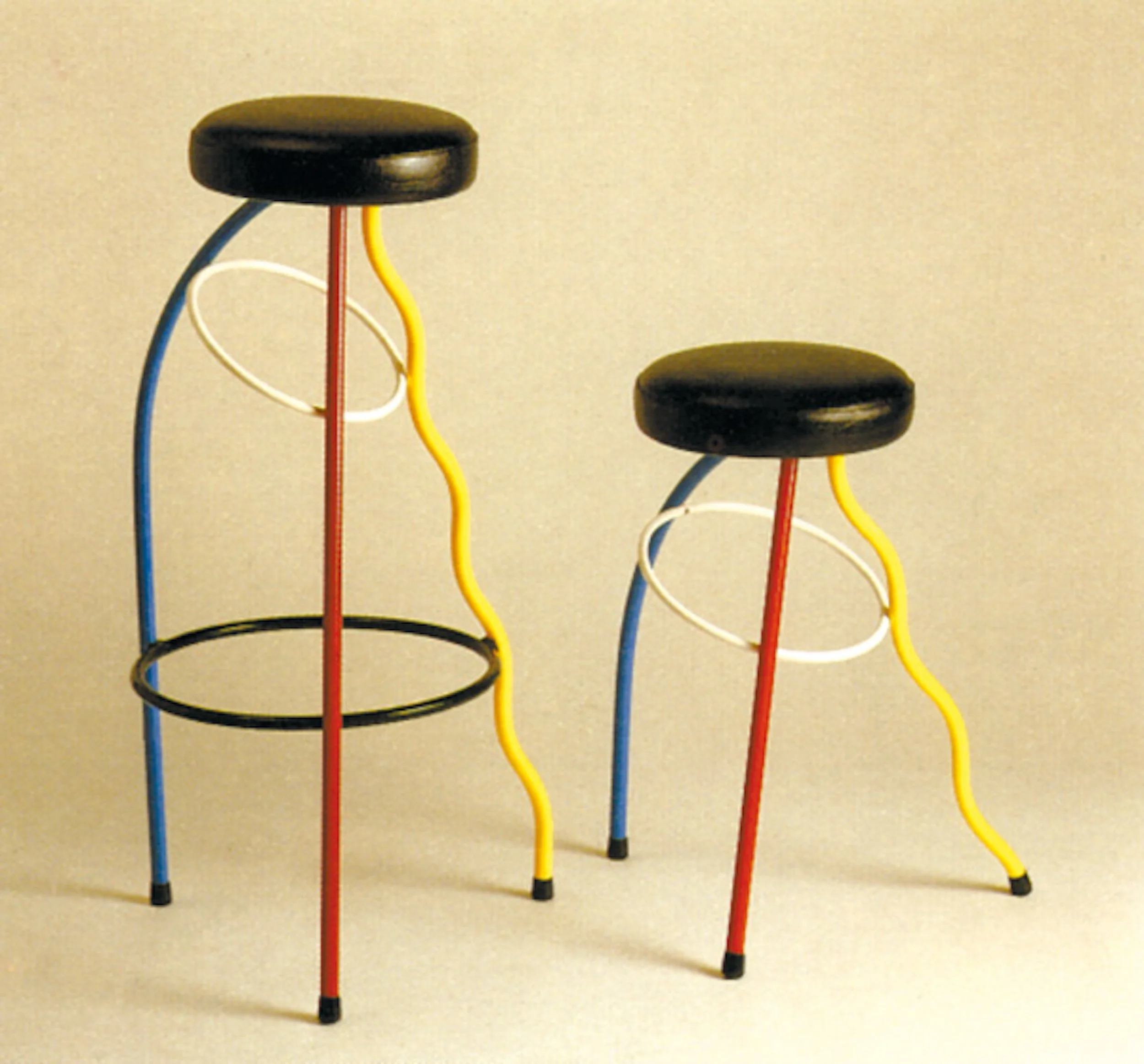 Javier Mariscal's Duplex stool was designed in 1980 for the Duplex bar in Valencia. It features vibrant colours and a unique leg design.