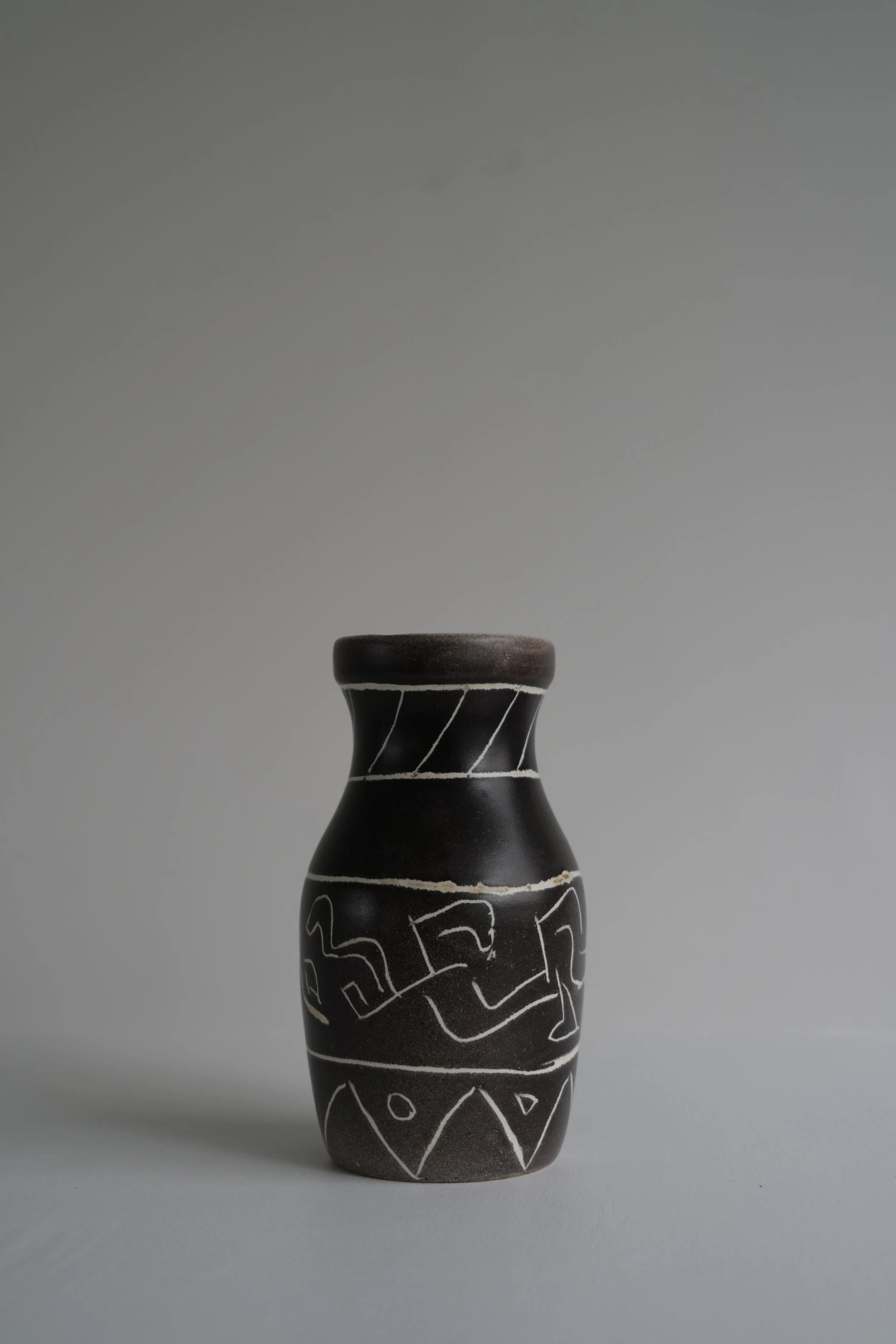 フランスの陶芸家エレーヌ・ユゴが成形したベースに、装飾家ミシェル・バルビエが抽象的な模様を施した共同作品です